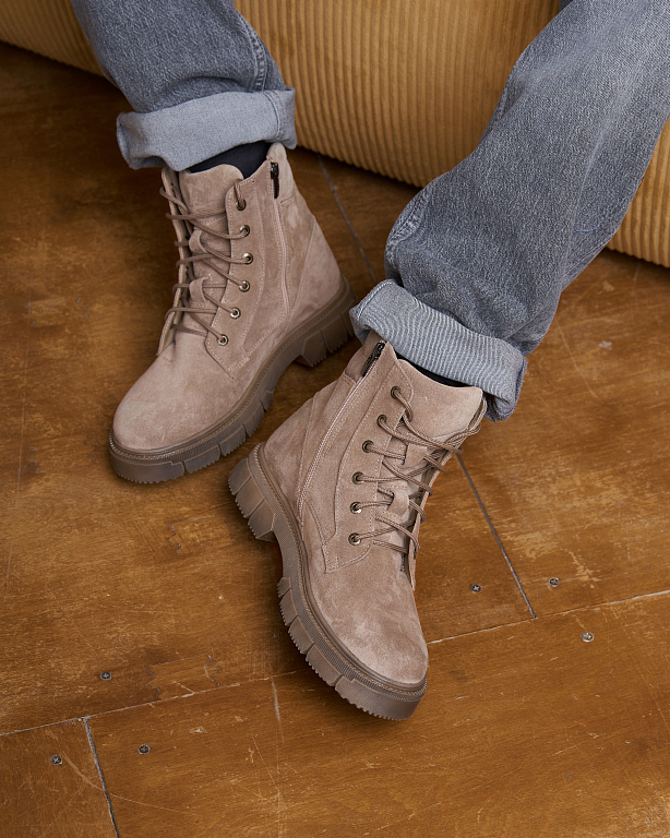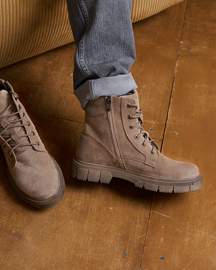 Мягкая утеплённая подкладка поддерживает комфорт и создаёт приятный микроклимат. Классическая шнуровка позволяет легко регулировать посадку, а прочная подошва с