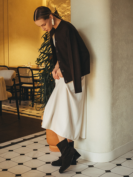 Модель представлена в нескольких вариантах: из мягкой натуральной кожи или деликатной замши, а палитра оттенков позволит подобрать идеальное сочетание под любой образ.
