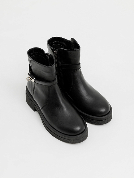 Стильная и современная модель, созданная для тех, кто любит лаконичность с акцентом. Ботинки на молнии с декоративным элементом привлекают внимание сдержанным, но выразительным деталем, который подчёркивает индивидуальность пары, не перегружая образ.