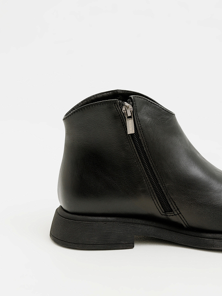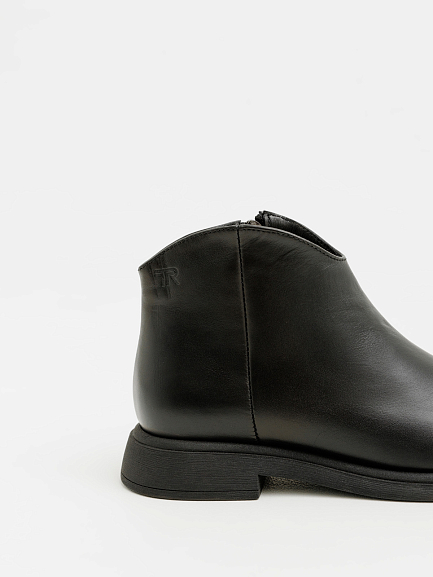 Современная интерпретация классической обуви — ботинки со скошенным верхом. Особый крой линии верха визуально вытягивает ногу и добавляет образу динамики. Такая деталь делает модель более выразительной, сохраняя её универсальность и минимализм.