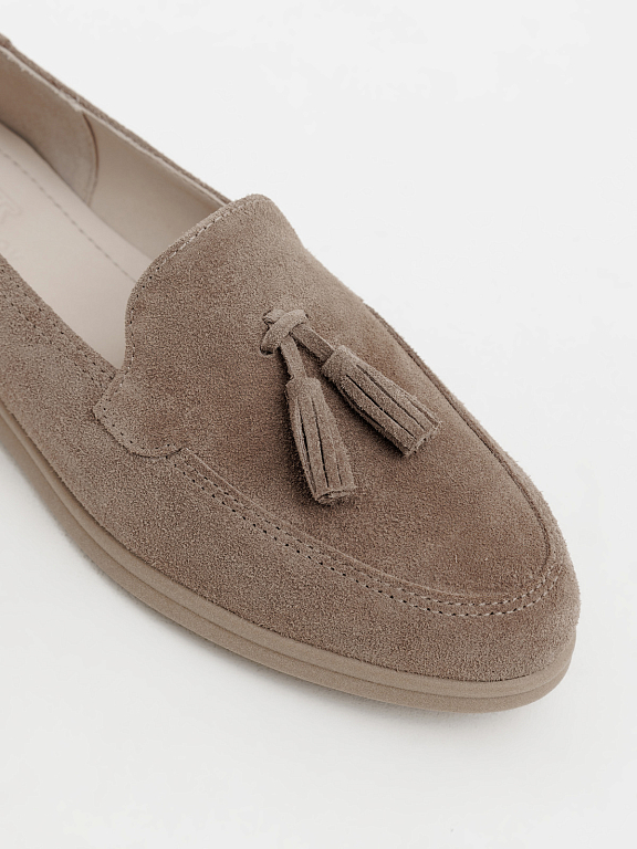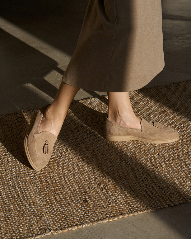 Классические лоферы с декоративной кисточкой — вечный элемент в гардеробе, который легко впишется в современные образы. Модель выполнена из натуральной замши, отличается комфортной посадкой и гибкой подошвой для ежедневной носки.