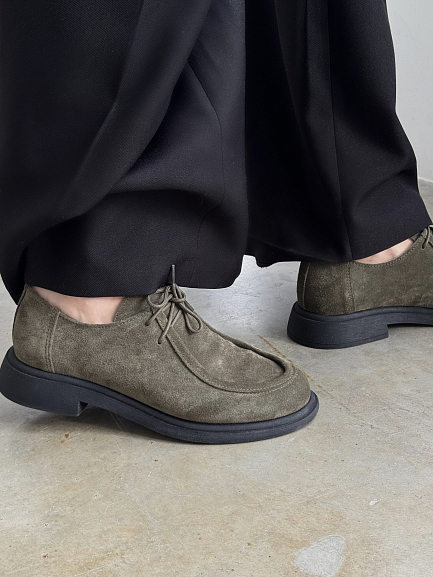 Эти полуботинки — идеальный выбор для тех, кто ценит чистые линии, комфорт и выразительные детали. Мягкая натуральная замша, округлый мыс и декоративный наружный шов придают модели характер и подчёркивают её премиальность.