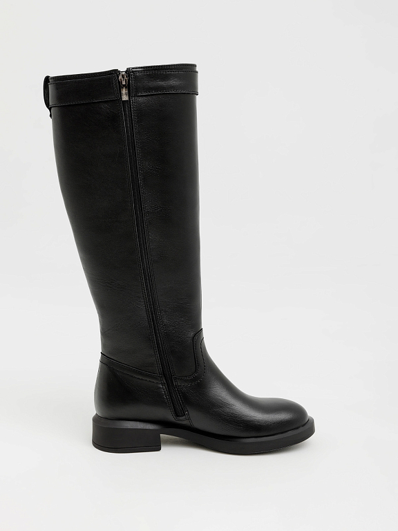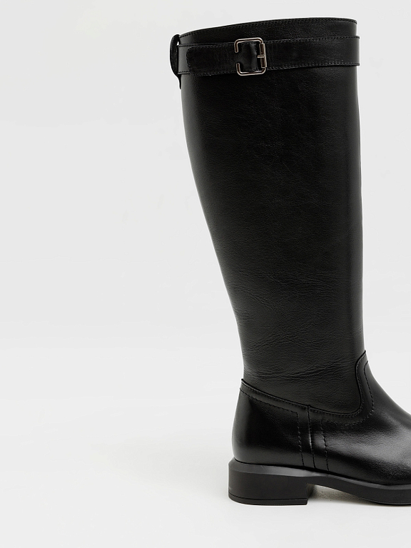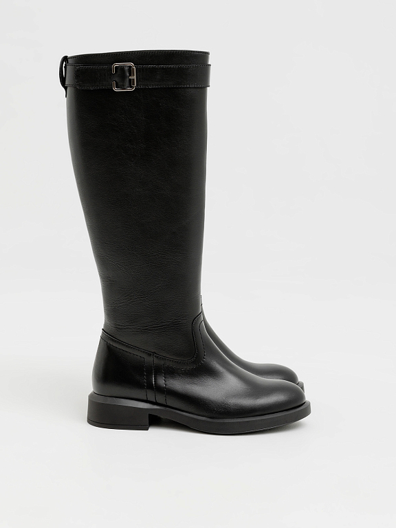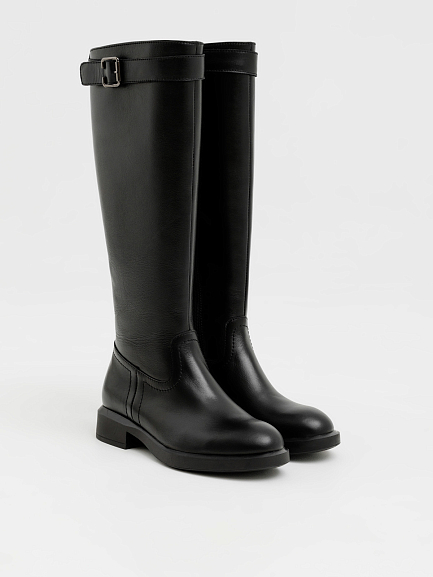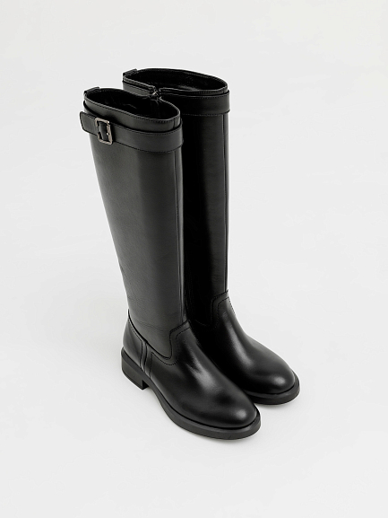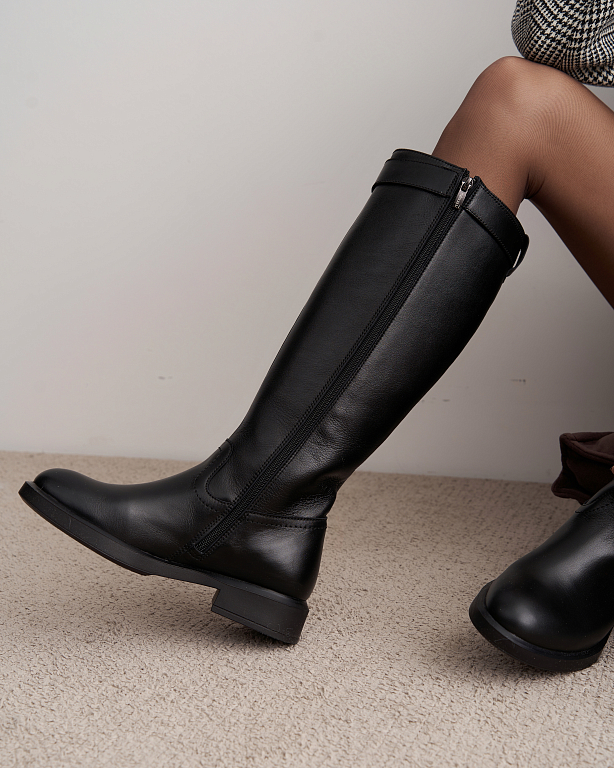 Элегантные и практичные женские сапоги на замке — это идеальный вариант для прохладного сезона. Лаконичный силуэт дополнен аккуратным ремешком с пряжкой в верхней части, который подчеркивает стройность ноги и добавляет образу утончённости.