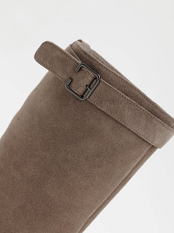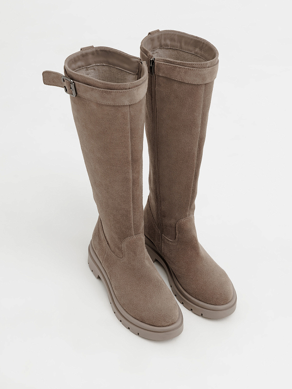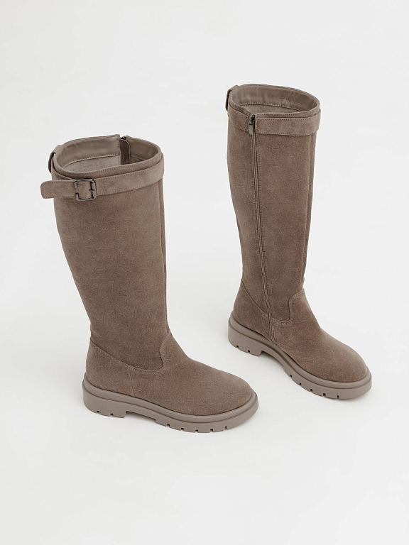 Элегантные и практичные женские сапоги на замке — это идеальный вариант для прохладного сезона. Лаконичный силуэт дополнен аккуратным ремешком с пряжкой в верхней части, который подчеркивает стройность ноги и добавляет образу утончённости.