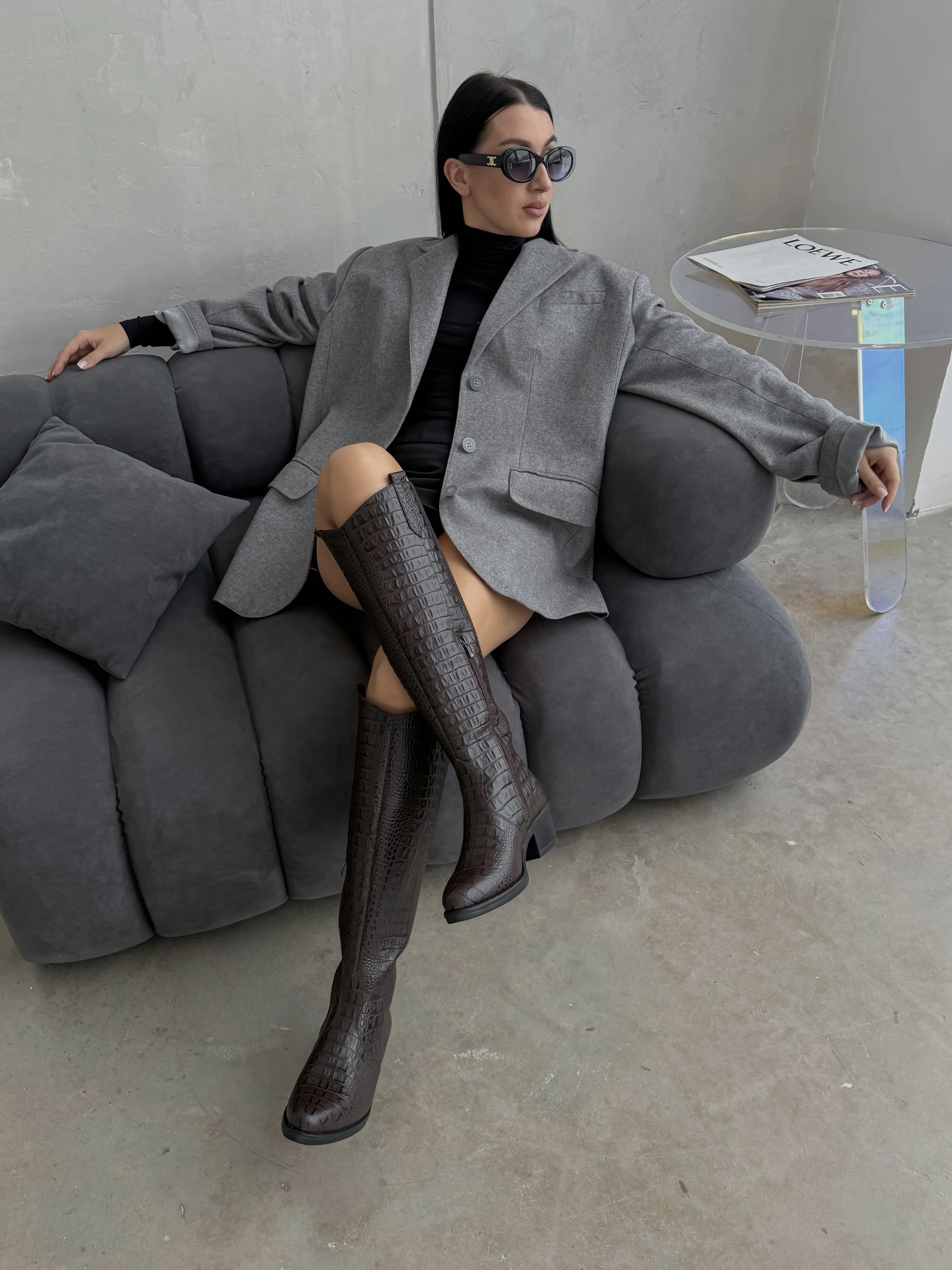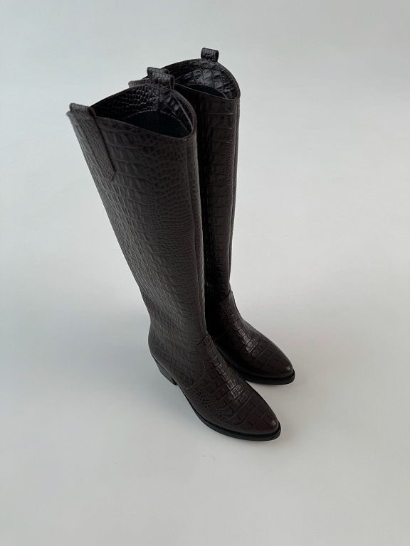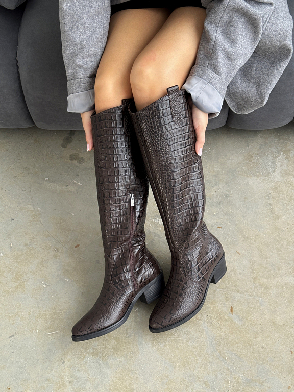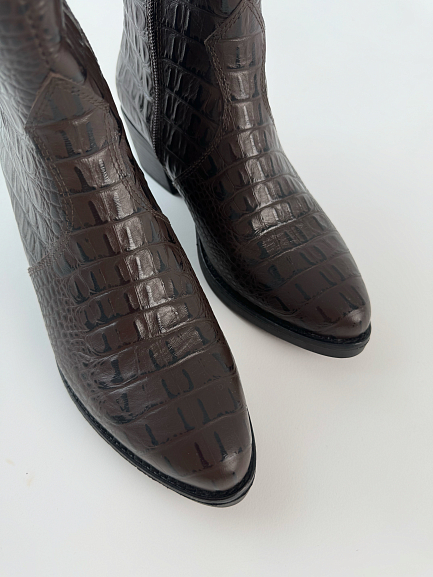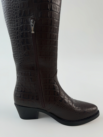 Материал: 100% натуральная кожа Материал подклада: кожа/ байка Высота ботинка (без учета подошвы): 42 см Высота подошвы: 1 см Высота каблука: 5.5 см Сезон: лето/ демисезонные (от +10 до-15)