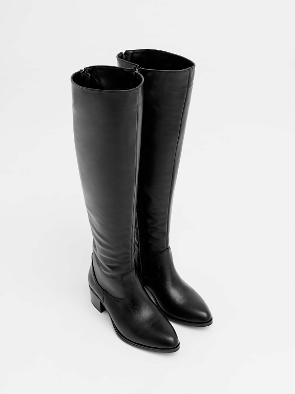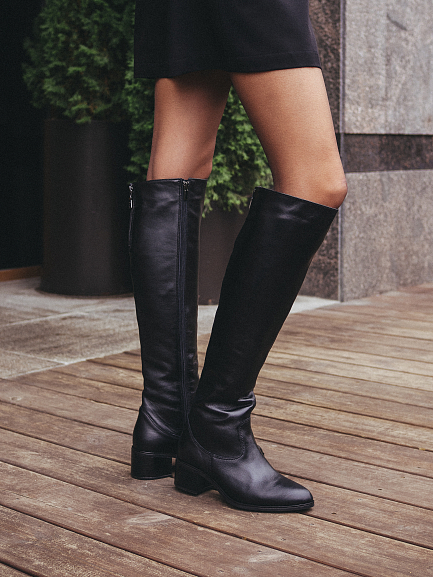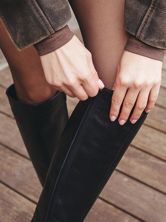 Ботфорты с заострённым носом и молнией по всей длине — эффектная пара, созданная, чтобы подчеркнуть стройность ног и добавить образу уверенности.